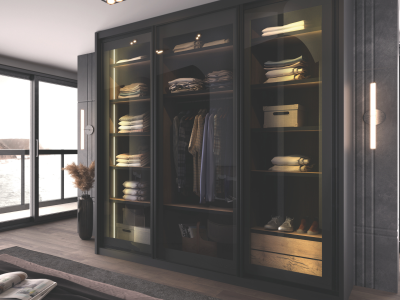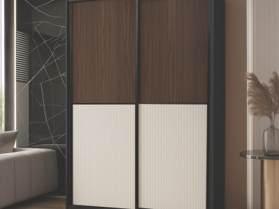 ארון הזזה איבוני בשילוב מראה ברונזה